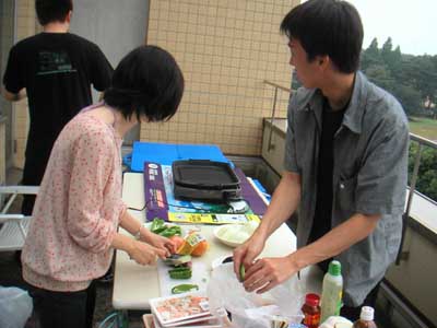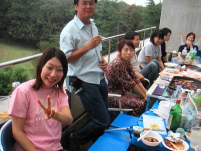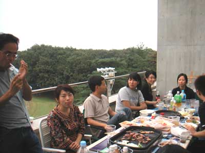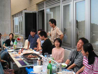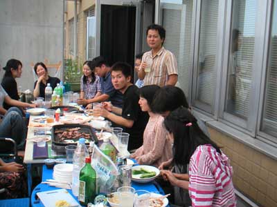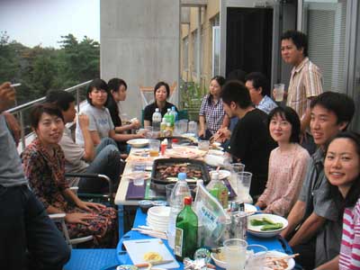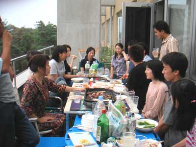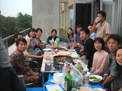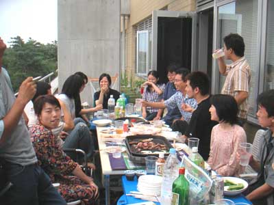 平成15年9月1日 ゼミ研究室メンバーで暑気払いパーティ ただいま準備中 食べ疲れかも・・・ 山口さん,田部井さん,田中さんはしっかりカメラ目線 大人しくしている伊藤さんと原田くんと市瀬さん 伊藤さん,市瀬さんと原田くん,やっと笑いました・・・ 宮田先生,カンパーイ みんなこっちを向いてくれました 浅見さんも仁木先生も楽しそうです 驚き顔の三浦くん