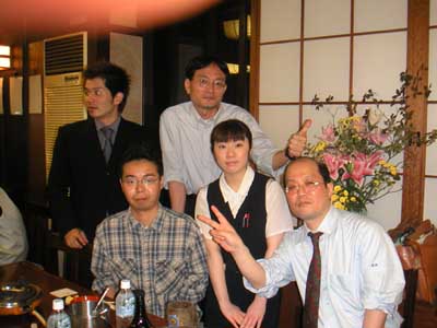 前左より,宮田助手,美々卯のKさん,山下,後左より三浦氏,上山教授