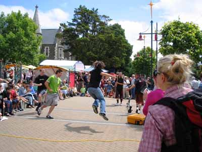 その周辺では,コントをする若者たち,大道芸人, ストリートミュージシャン・・・等々,